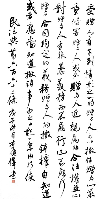 “書·法”活動(dòng)以書寫《中華人民共和國民法典》法條開筆,未來將對(duì)準(zhǔn)更多的法律。