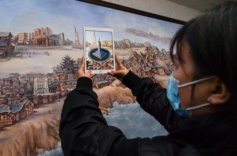 近年來,重慶紅巖革命紀(jì)念館積極推動革命文物活化利用,讓革命文物資源融入到當(dāng)代文化生產(chǎn)和生活方式中,讓紅巖革命文物“活”起來。圖為工作人員在重慶紅巖革命紀(jì)念館“紅巖記憶”數(shù)字體驗(yàn)廳內(nèi)使用移動設(shè)備演示AR互動展示技術(shù)(2020年12月9日攝)。新華社記者 李賀/攝