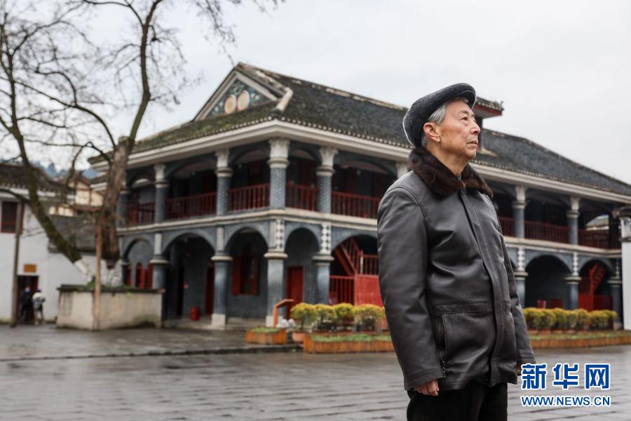 1月27日,83歲的遵義會(huì)議紀(jì)念館原副館長(zhǎng)田興詠在遵義會(huì)議會(huì)址前口述歷史。新華社記者 歐東衢 攝