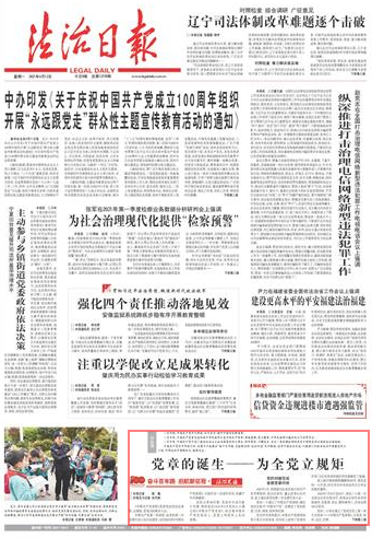 中國共產(chǎn)黨百年華誕之際,法治日報(bào)4月12日起推出“奮斗百年路 啟航新征程·法治足跡”系列報(bào)道,追尋中國法治足跡,以激勵(lì)人們投身法治中國建設(shè)偉大工程,開辟法治中國新紀(jì)元。敬請關(guān)注。