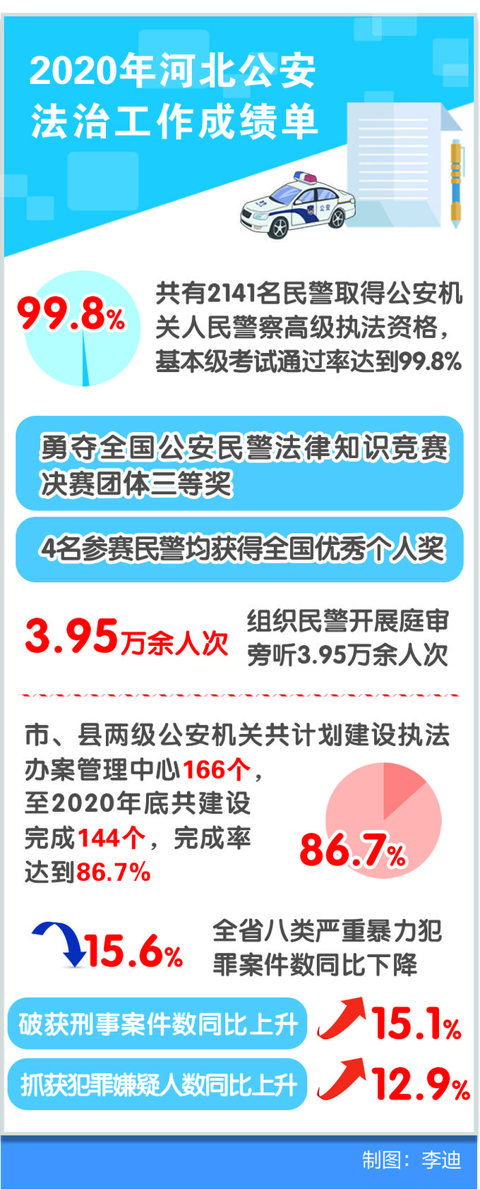 在2020年公安機(jī)關(guān)人民警察執(zhí)法資格等級考試中,河北公安共有2141名民警取得高級執(zhí)法資格,基本級執(zhí)法資格考試通過率達(dá)99.8%。