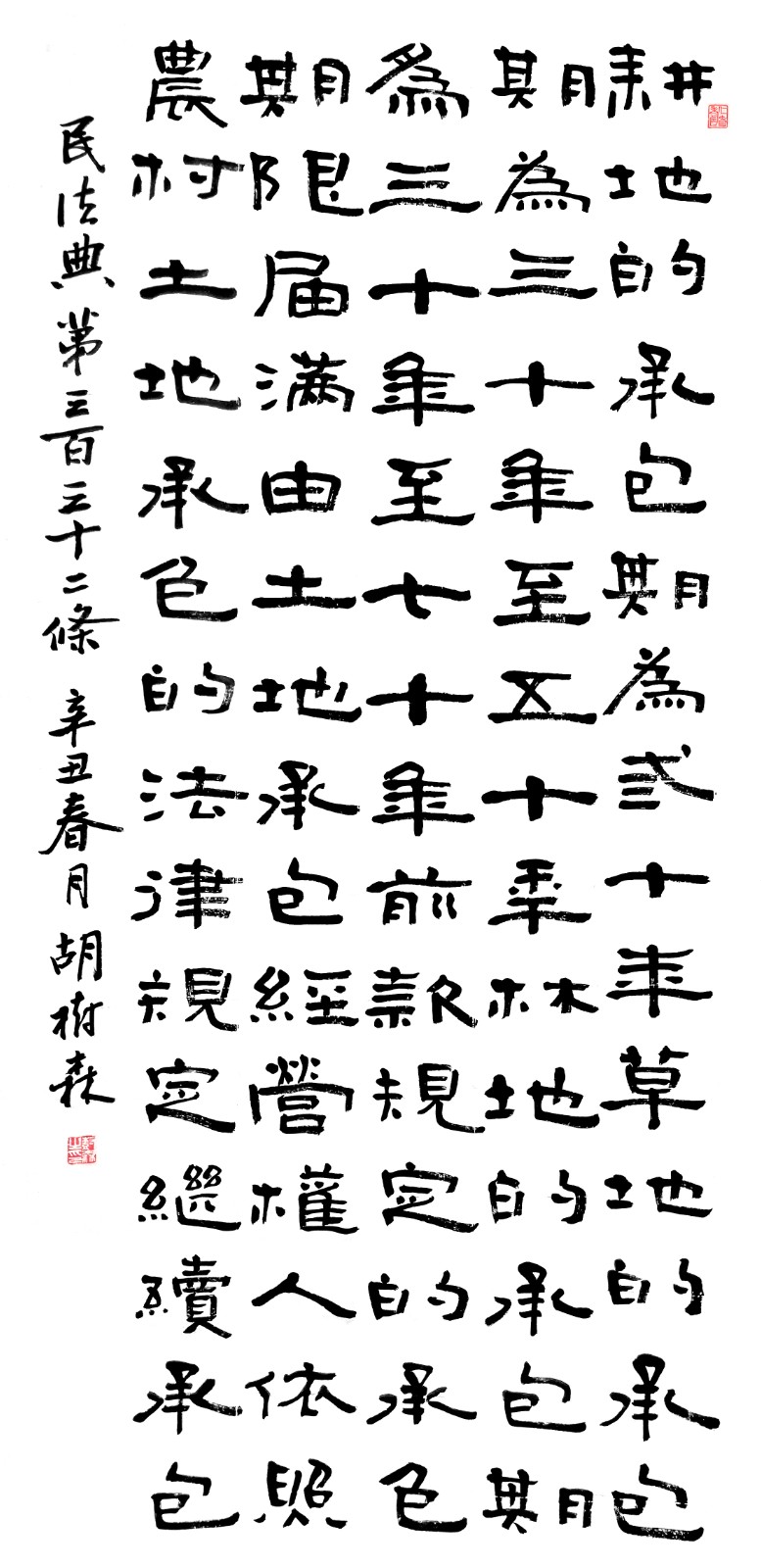民法典第三百三十二條 耕地的承包期為三十年。草地的承包期為三十年至五十年。林地的承包期為三十年至七十年。