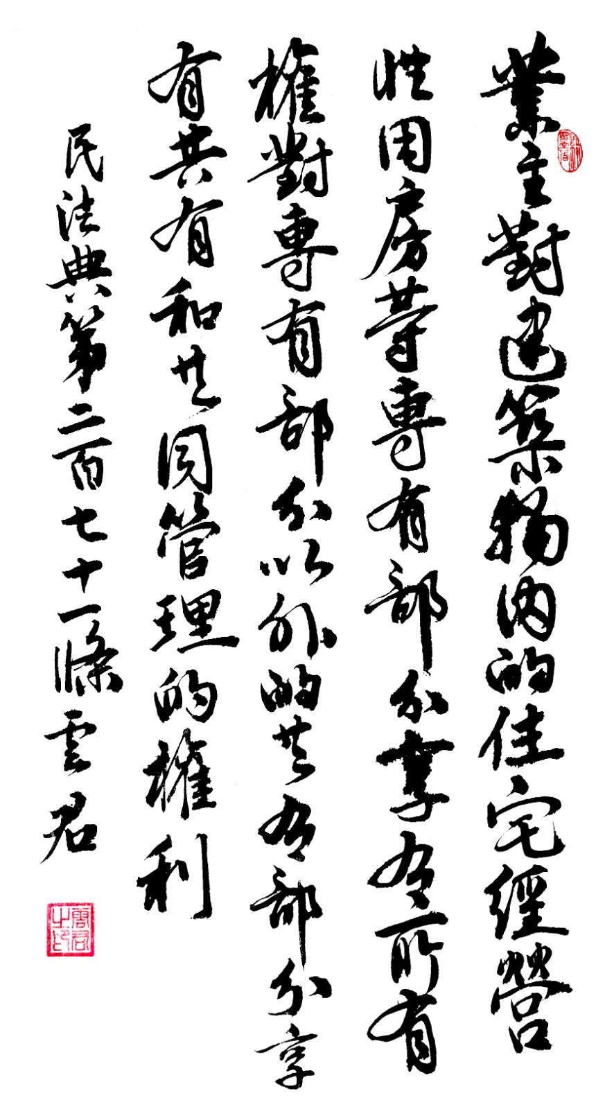 民法典第二百七十一條 業(yè)主對建筑物內(nèi)的住宅、經(jīng)營性用房等專有部分享有所有權(quán),對專有部分以外的共有部分享有共有和共同管理的權(quán)利。
