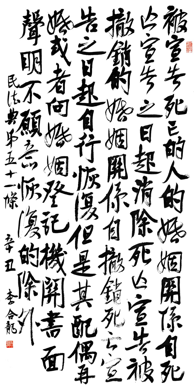 “書·法”活動(dòng)以書寫《中華人民共和國民法典》法條開筆,未來將對(duì)準(zhǔn)更多的法律。