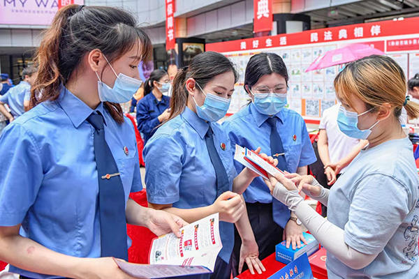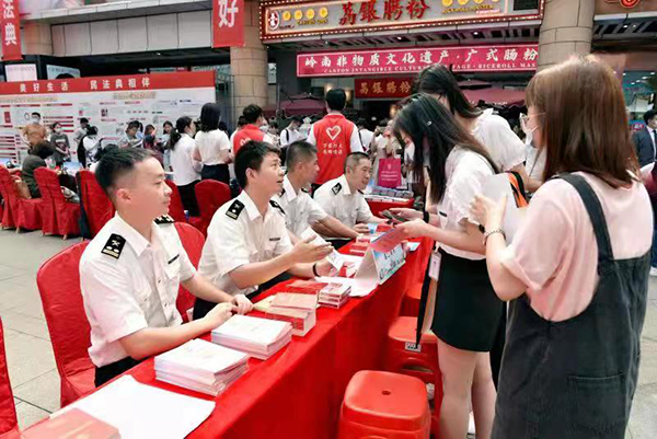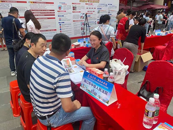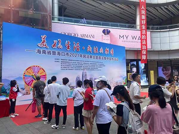 5月28日上午,海南省普治辦、省司法廳聯(lián)合海口市普治辦、海口市司法局、海南電網(wǎng)有限責任公司、海口海關、省水務廳、省律師協(xié)會、省消防救援總隊在海口市日月廣場開展民法典集中普法宣傳活動。27家省直和??谑兄眴挝辉诨顒蝇F(xiàn)場擺放民法典展板、設置法律服務咨詢臺,為群眾提供法律咨詢服務,免費發(fā)放宣傳資料。當天,全省18個市縣還同步組織開展開展民法典集中普法宣傳和法律咨詢活動。