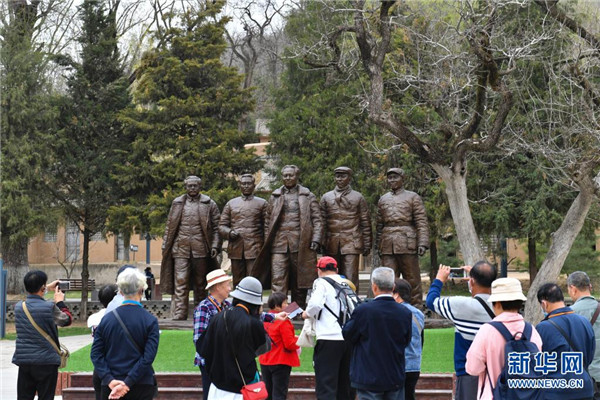 2021年3月30日,參觀者在陜西延安棗園革命舊址參觀。新華社記者 張博文 攝