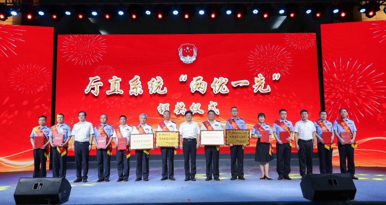 ▲江西省委政法委常務(wù)副書(shū)記林強(qiáng)、省政府副秘書(shū)長(zhǎng)吳龍強(qiáng)、省司法廳廳長(zhǎng)張強(qiáng)為廳直系統(tǒng)“兩優(yōu)一先”代表頒獎(jiǎng)
