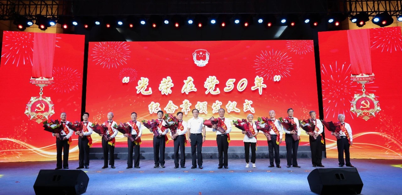 ▲江西省委常委、政法委書(shū)記尹建業(yè)為“光榮在黨50年”紀(jì)念章獲得者代表頒發(fā)紀(jì)念章