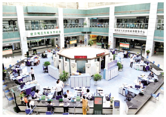 2013年,國務院決定先行取消和下放91項行政審批事項,并要求各部門加大減少和下放行政審批事項工作力度,簡政放權、放管結合、優(yōu)化服務,簡稱“放管服”改革。圖為四川省人民政府政務服務大廳。 法治日報全媒體記者 楊晉峰 攝