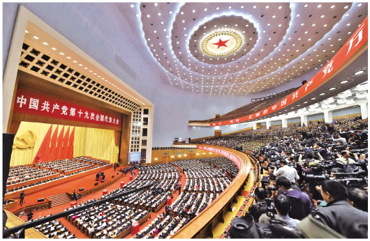 2017年10月24日,中國共產黨第十九次全國代表大會勝利閉幕。大會通過了關于十八屆中央委員會報告的決議。報告中八個“明確”中指出“明確全面推進依法治國總目標是建設中國特色社會主義法治體系、建設社會主義法治國家”,十四個“堅持”中指出“堅持全面依法治國”。 可為 攝