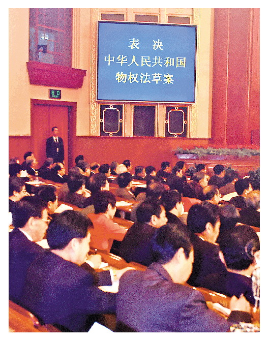 2007年3月,十屆全國人大五次會議通過《中華人民共和國物權法》,對于堅持和完善國家基本經濟制度、保護權利人的物權、加快構建社會主義和諧社會,具有十分重要的意義。(資料圖片)