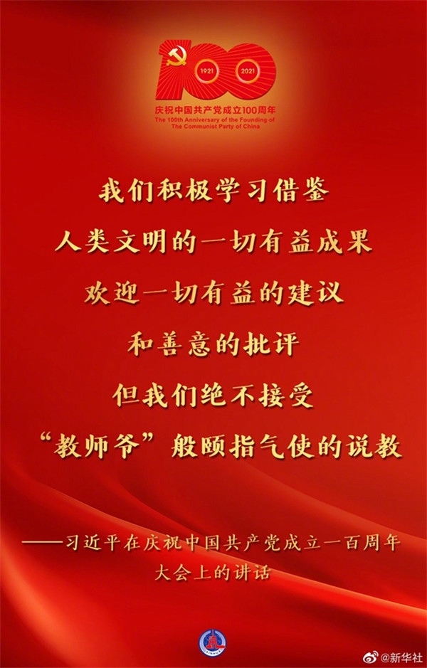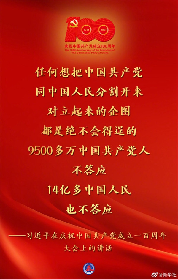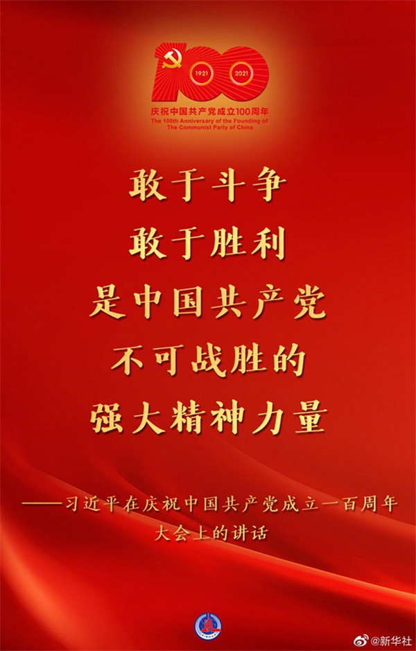 習(xí)近平在慶祝中國共產(chǎn)黨成立一百周年大會上的講話金句