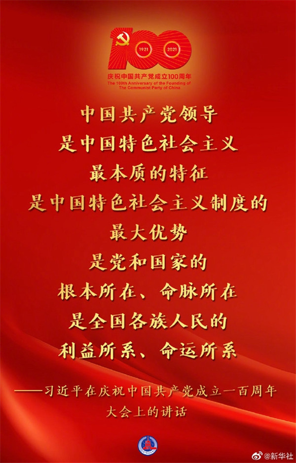 7月1日,慶祝中國共產(chǎn)黨成立一百周年大會在北京隆重舉行,習(xí)近平總書記出席并發(fā)表重要講話??匆c(diǎn)↓