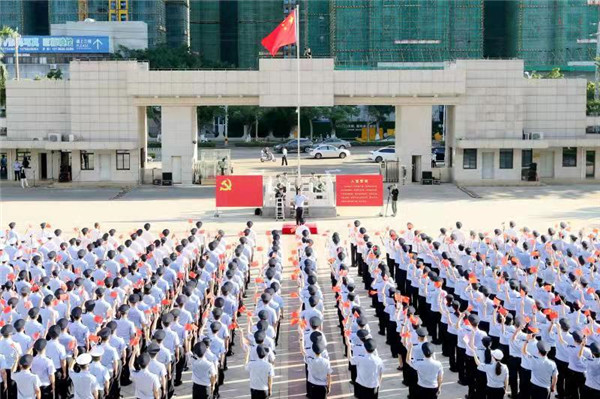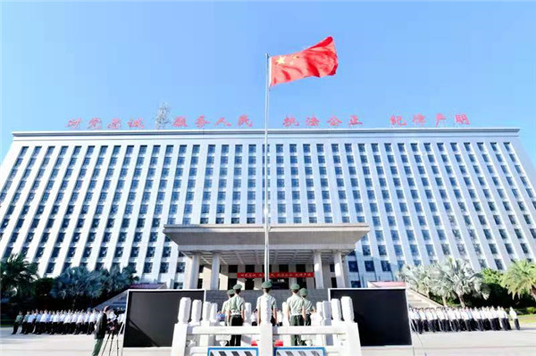 盛夏時節(jié),舉國同慶,神州大地,繁花似錦。7月1日上午,中國共產(chǎn)黨成立100周年當天,海南省公安廳在廳機關(guān)大院舉行了隆重、神圣的升國旗儀式。在嘹亮的國歌聲中,廳機關(guān)和廳直屬單位民警在副省長、公安廳黨委書記、廳長閆希軍的帶領(lǐng)下整齊列隊,面向冉冉升起的五星紅旗莊嚴敬禮。