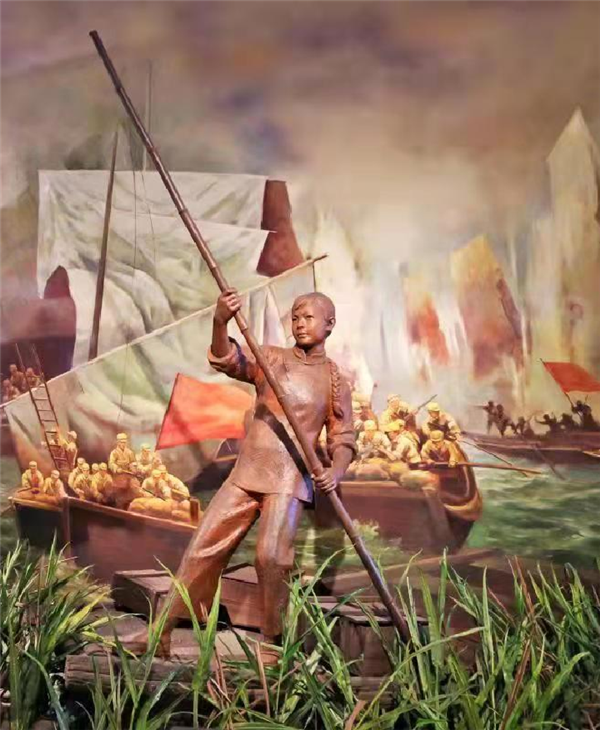 渡江戰(zhàn)役紀(jì)念館里以馬毛姐為原型設(shè)計(jì)的雕塑。(渡江戰(zhàn)役紀(jì)念館供圖)