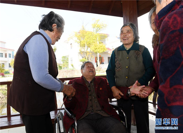 3月28日,馬毛姐回到家鄉(xiāng)安徽省無為市劉渡鎮(zhèn)馬壩村,與當(dāng)年的姐妹們話家常。新華社發(fā)(鄭遠(yuǎn) 攝)