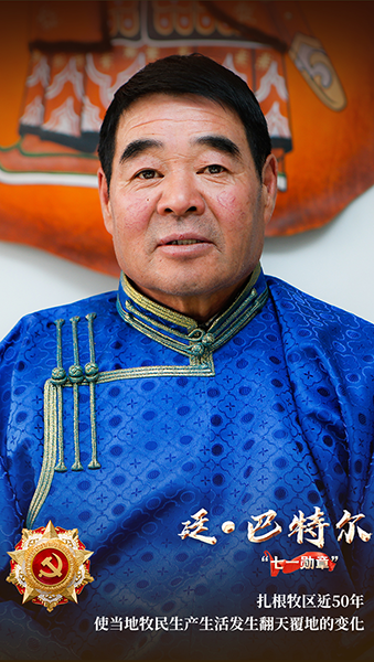 66歲的廷·巴特爾跟草原和牧民打了大半輩子交道。上周,他在人民大會堂金色大廳領獎臺,戴上了代表黨內最高榮譽的“七一勛章”。