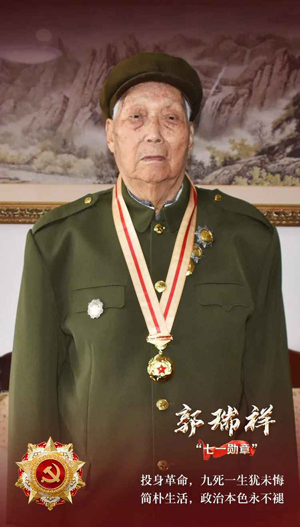 中國共產(chǎn)黨百年光輝歷程,郭瑞祥既是見證者又是參與者。作為軍人,他先后榮立二等功1次、三等功2次,1957年被授予三級獨立自由勛章、三級解放獎?wù)?1988年被授予中國人民解放軍獨立功勛榮譽章。