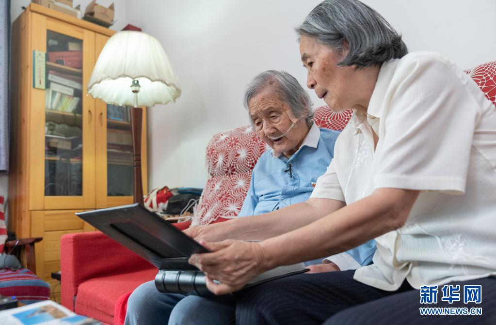 6月23日,在北京的家中,瞿獨伊(左)和女兒李曉云向記者展示家人的相冊。新華社記者 才揚 攝
