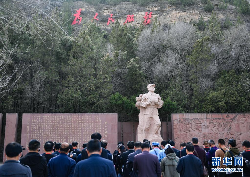 黨員干部在延安市張思德廣場(chǎng)進(jìn)行現(xiàn)場(chǎng)教學(xué)活動(dòng)(3月29日攝)。新華社記者 張博文 攝