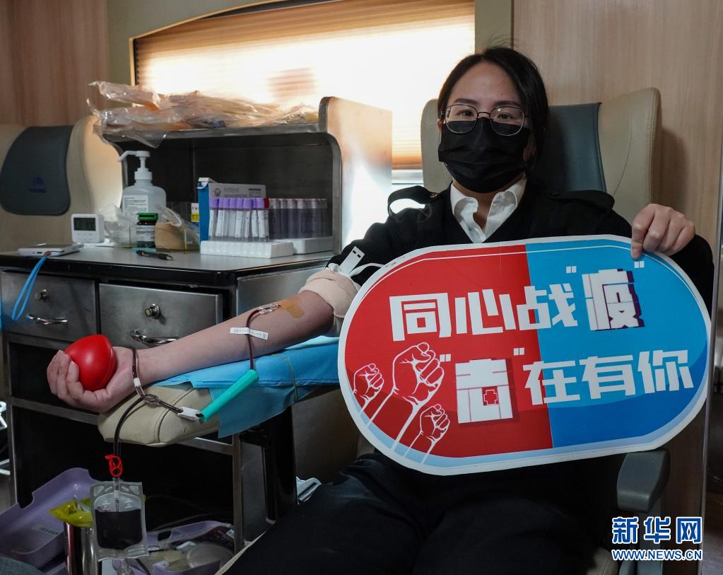 2020年3月5日,杭州海關(guān)青年關(guān)員在獻血車上獻血。新華社發(fā)(趙凡瑜 攝)