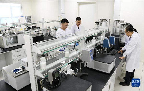 在大慶油田勘探開發(fā)研究院,科研人員在進(jìn)行聚合物驅(qū)油實(shí)驗(yàn)(2019年6月26日攝)。新華社記者 王建威 攝