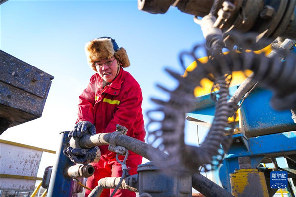 大慶油田1205鉆井隊(duì)鉆井工人在野外鉆井平臺(tái)作業(yè)(2021年1月7日攝)。新華社記者 王松 攝