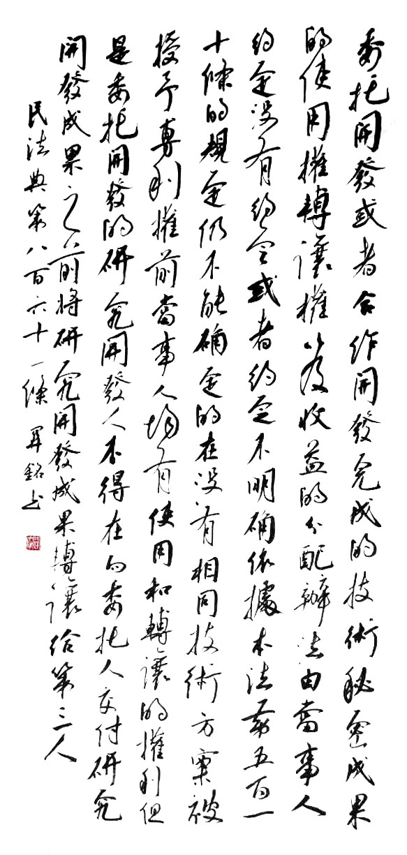民法典第八百六十一條 委托開發(fā)或者合作開發(fā)完成的技術(shù)秘密成果的使用權(quán)、轉(zhuǎn)讓權(quán)以及收益的分配辦法,由當(dāng)事人約定;沒有約定或者約定不明確,依據(jù)本法第五百一十條的規(guī)定仍不能確定的,在沒有相同技術(shù)方案被授予專利權(quán)前,當(dāng)事人均有使用和轉(zhuǎn)讓的權(quán)利。但是,委托開發(fā)的研究開發(fā)人不得在向委托人交付研究開發(fā)成果之前,將研究開發(fā)成果轉(zhuǎn)讓給第三人。