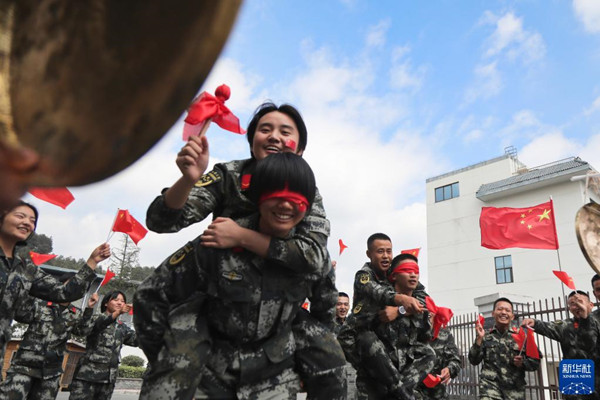 10月3日,武警貴州總隊(duì)貴陽支隊(duì)組織官兵開展文體活動(dòng)。新華社發(fā)(蔣林岫 攝)