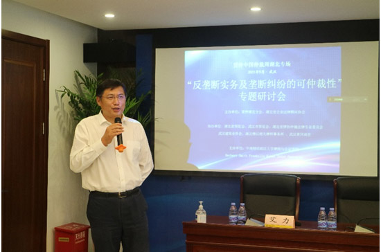 9月17日,由中國國際經(jīng)濟貿(mào)易仲裁委員會湖北分會和湖北省企業(yè)法律顧問協(xié)會主辦,湖北省貿(mào)促會、武漢市貿(mào)促會、湖北精以相天律師事務所等單位協(xié)辦的2021中國仲裁周湖北專場活動--“反壟斷實務及壟斷糾紛的可仲裁性專題研討會”在武漢成功舉辦,來自在漢央企和湖北國企、高校及律師事務所的法務高管、仲裁員、律師、學者等百余人參加了本次研討會。研討會由貿(mào)仲仲裁員、湖北省商務廳二級巡視員艾力先生主持。