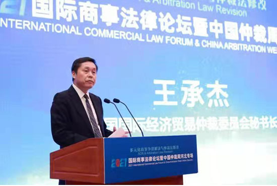 9月17日,2021國(guó)際商事法律論壇暨中國(guó)仲裁周河北專(zhuān)場(chǎng)在河北省石家莊市成功舉辦。由河北省貿(mào)促會(huì)、中國(guó)國(guó)際經(jīng)濟(jì)貿(mào)易仲裁委員會(huì)、中國(guó)國(guó)際貿(mào)易促進(jìn)委員會(huì)調(diào)解中心、河北雄安新區(qū)中級(jí)人民法院、河北省律師協(xié)會(huì)共同主辦。河北省貿(mào)促會(huì)索建杰副會(huì)長(zhǎng)、中國(guó)國(guó)際經(jīng)濟(jì)貿(mào)易仲裁委員會(huì)王承杰副主任兼秘書(shū)長(zhǎng)、中國(guó)國(guó)際貿(mào)易促進(jìn)委員會(huì)調(diào)解中心蔡晨風(fēng)秘書(shū)長(zhǎng)、河北雄安新區(qū)中級(jí)人民法院張曉梅副院長(zhǎng)、河北省律師協(xié)會(huì)張金龍會(huì)長(zhǎng)致辭。