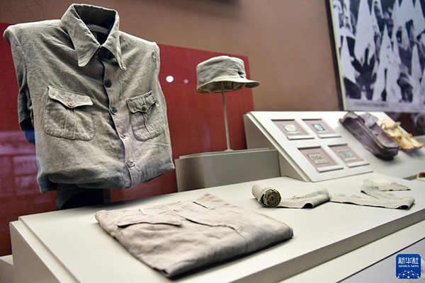 這是在位于山西省長(zhǎng)治市武鄉(xiāng)縣的八路軍太行紀(jì)念館內(nèi)拍攝的八路軍軍裝(2019年12月20日攝)。新華社記者 曹陽(yáng) 攝