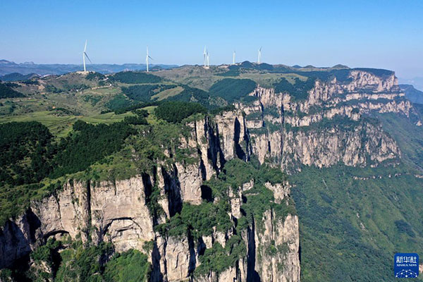 這是2021年9月8日在山西省平順縣玉峽關(guān)鎮(zhèn)拍攝的太行山風(fēng)光(無(wú)人機(jī)照片)。新華社記者 詹彥 攝
