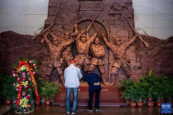 2020年9月25日,游客在位于山西省大同市靈丘縣的平型關(guān)大捷紀(jì)念館內(nèi)參觀。新華社記者 楊晨光 攝