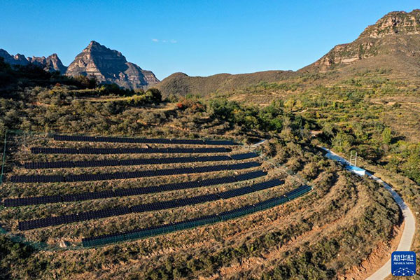這是2020年10月16日在山西省左權(quán)縣拍攝的一處村級(jí)光伏電站(無(wú)人機(jī)照片)。新華社記者 曹陽(yáng) 攝