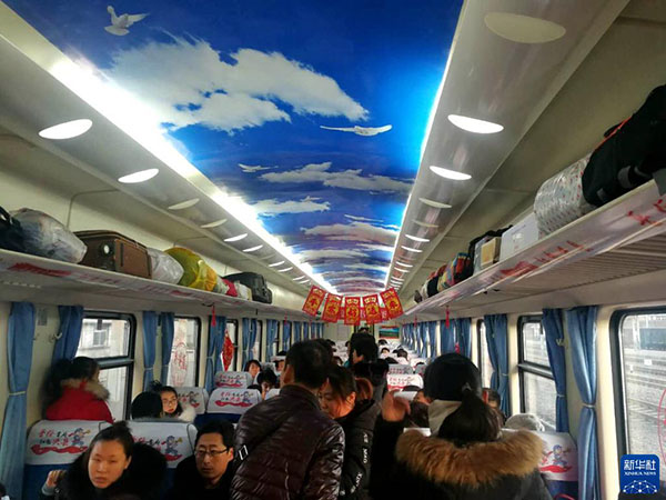 這是2019年1月21日拍攝的“蔡家崖”號(hào)列車車廂內(nèi)景。新華社記者 呂夢(mèng)琦 攝