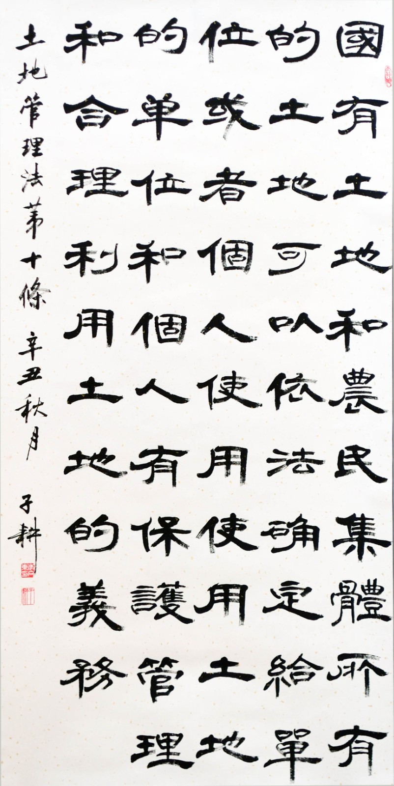繼1600余位書法家參與書寫《中華人民共和國民法典》全部1260條法條之后,法治日報(bào)社聯(lián)合自然資源部法規(guī)司、自然資源部書畫研究會(huì)和北京昌平書法家協(xié)會(huì),將筆端對準(zhǔn)土地管理“一法一條例”,即《中華人民共和國土地管理法》和《中華人民共和國土地管理法實(shí)施條例》。