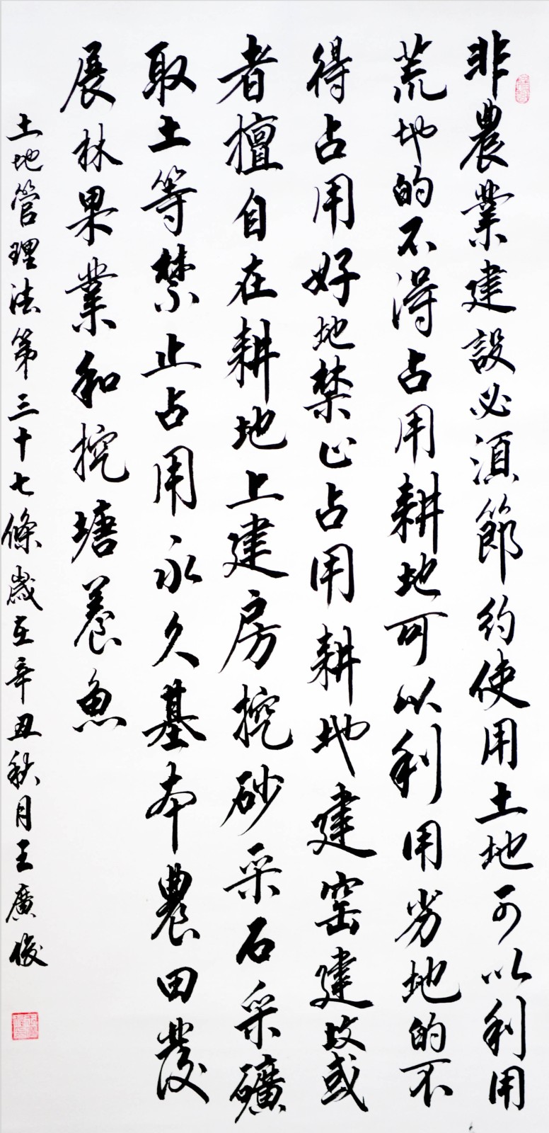 繼1600余位書(shū)法家參與書(shū)寫(xiě)《中華人民共和國(guó)民法典》全部1260條法條之后,法治日?qǐng)?bào)社聯(lián)合自然資源部法規(guī)司、自然資源部書(shū)畫(huà)研究會(huì)和北京昌平書(shū)法家協(xié)會(huì),將筆端對(duì)準(zhǔn)土地管理“一法一條例”,即《中華人民共和國(guó)土地管理法》和《中華人民共和國(guó)土地管理法實(shí)施條例》。