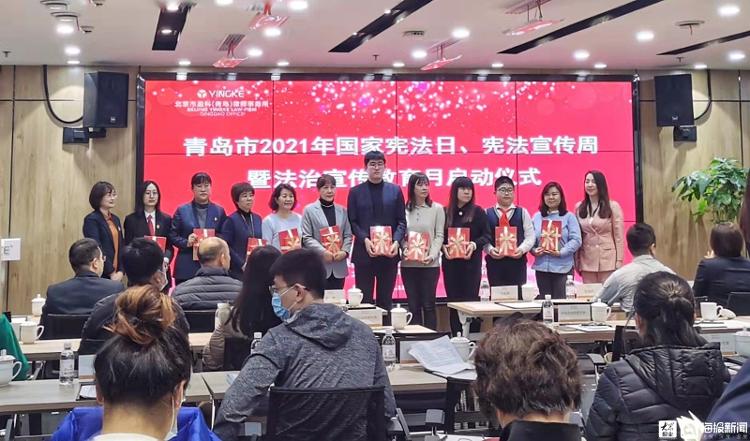 儀式在“我是憲法朗讀者”宣傳片的朗朗誦讀聲中開始,劉春穎同志與有關(guān)領(lǐng)導(dǎo)為學(xué)法講法優(yōu)秀代表贈送憲法書籍,并宣布“青島市2021年國家憲法日、憲法宣傳周暨法治宣傳教育月主題宣傳活動正式啟動”。