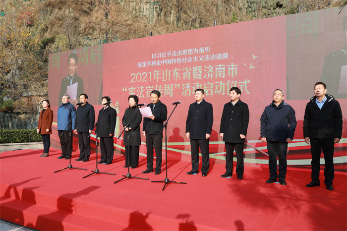 11月29日,2021年山東省暨濟南市“憲法宣傳周”活動啟動儀式在歷下區(qū)洪山憲法主題公園舉行。活動現(xiàn)場,來自歷下區(qū)的64名行政執(zhí)法人員進(jìn)行了集體宣誓。