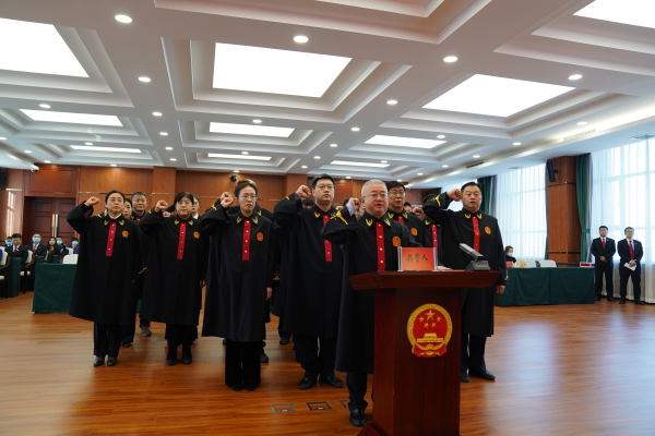憲法宣誓活動(dòng)現(xiàn)場(chǎng),新任職的院領(lǐng)導(dǎo)班子成員、審判委員會(huì)委員、審判員,崗位調(diào)整的科級(jí)干部,新入額的法官和試用期滿轉(zhuǎn)正人員共計(jì)26名干警,在院黨組書記、院長周興志領(lǐng)誓下,舉起右手莊嚴(yán)進(jìn)行憲法宣誓。