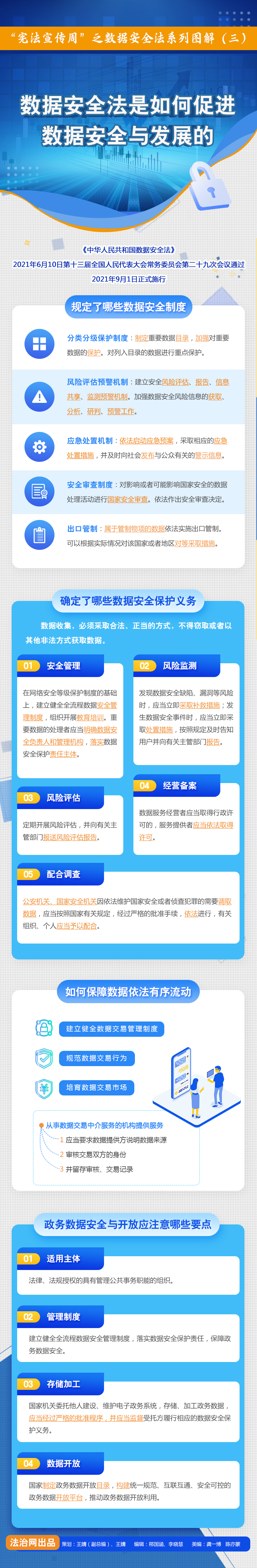值此第四個“憲法宣傳周”之際,法治網將為您解讀今年9月1日起施行的《中華人民共和國數據安全法》——這部法律的亮點是什么?它是如何支持促進數據安全與發(fā)展的?它又彰顯了哪些數據“溫度”?這一系列問題,都會在法治網《數據安全法圖解(系列)》中找到答案。