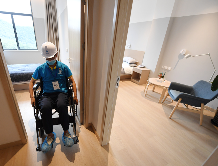 8月20日,工作人員展示北京冬奧會(huì)延慶冬奧村無(wú)障礙樣板間。新華社記者 張晨霖 攝