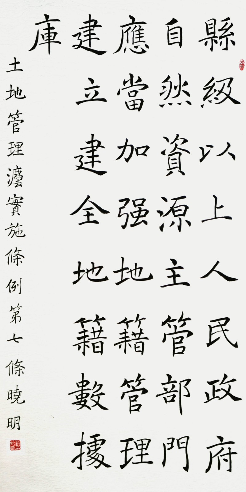 繼1600余位書法家參與書寫《中華人民共和國民法典》全部1260條法條之后,法治日報(bào)社聯(lián)合自然資源部法規(guī)司、自然資源部書畫研究會(huì)和北京昌平書法家協(xié)會(huì),將筆端對準(zhǔn)土地管理“一法一條例”,即《中華人民共和國土地管理法》和《中華人民共和國土地管理法實(shí)施條例》。