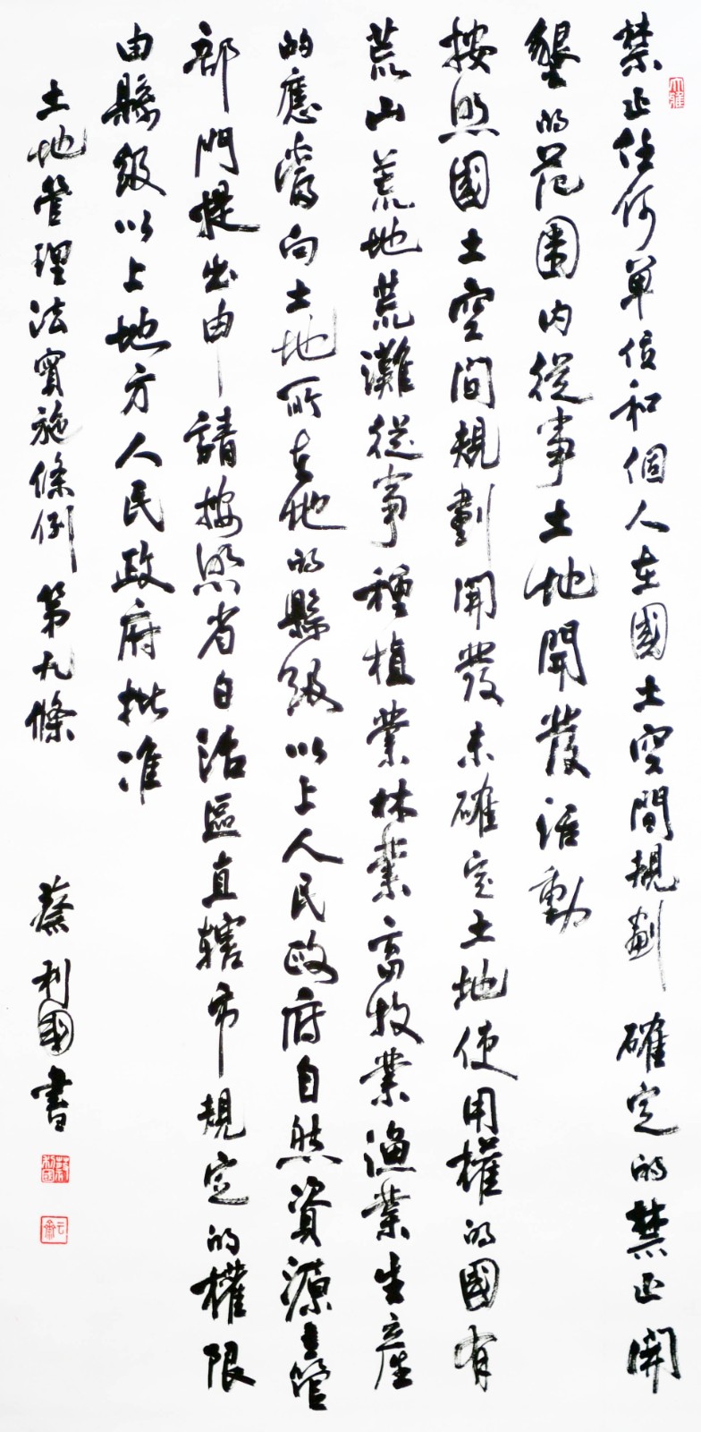 繼1600余位書法家參與書寫《中華人民共和國(guó)民法典》全部1260條法條之后,法治日?qǐng)?bào)社聯(lián)合自然資源部法規(guī)司、自然資源部書畫研究會(huì)和北京昌平書法家協(xié)會(huì),將筆端對(duì)準(zhǔn)土地管理“一法一條例”,即《中華人民共和國(guó)土地管理法》和《中華人民共和國(guó)土地管理法實(shí)施條例》。