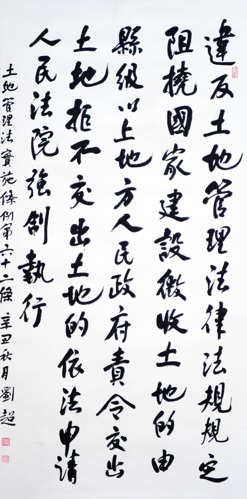 繼1600余位書法家參與書寫《中華人民共和國(guó)民法典》全部1260條法條之后,法治日?qǐng)?bào)社聯(lián)合自然資源部法規(guī)司、自然資源部書畫研究會(huì)和北京昌平書法家協(xié)會(huì),將筆端對(duì)準(zhǔn)土地管理“一法一條例”,即《中華人民共和國(guó)土地管理法》和《中華人民共和國(guó)土地管理法實(shí)施條例》。
