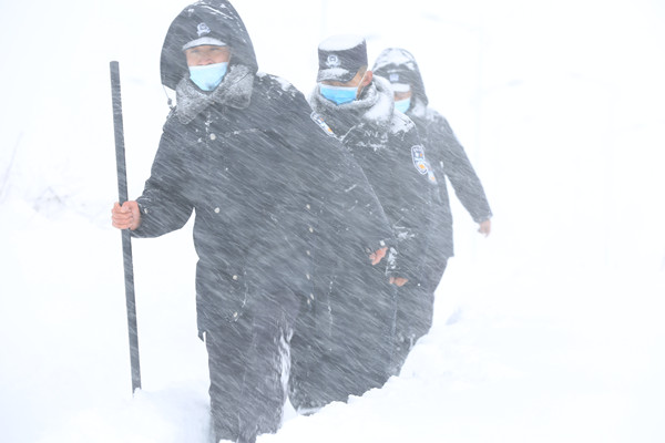 “這是我看到過最厚的一場(chǎng)雪,我們必須要以風(fēng)雪為令,以雪情為警情,守護(hù)好邊境群眾的生命財(cái)產(chǎn)安全。”移民管理警察拉加?xùn)|主說:“后面同志走快點(diǎn),前面有受困車輛需要幫忙,我們集體上前搭把手”。