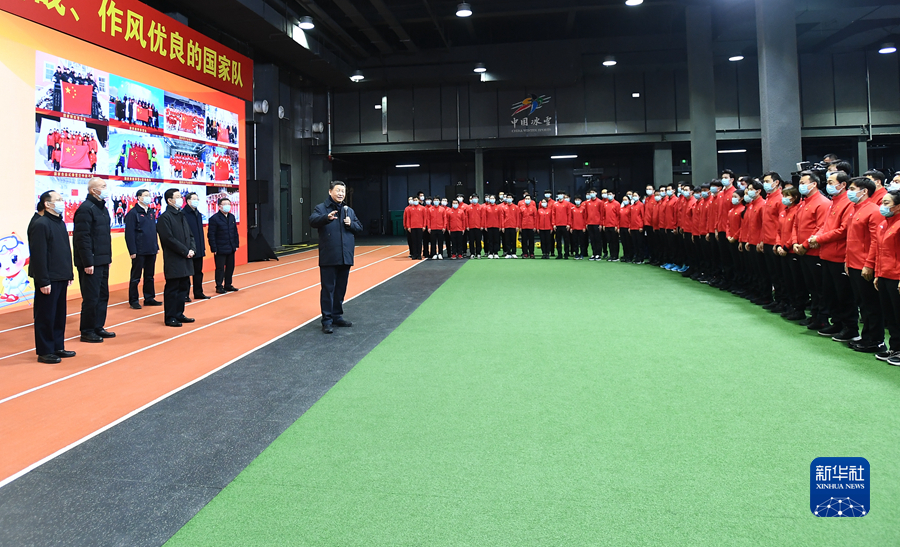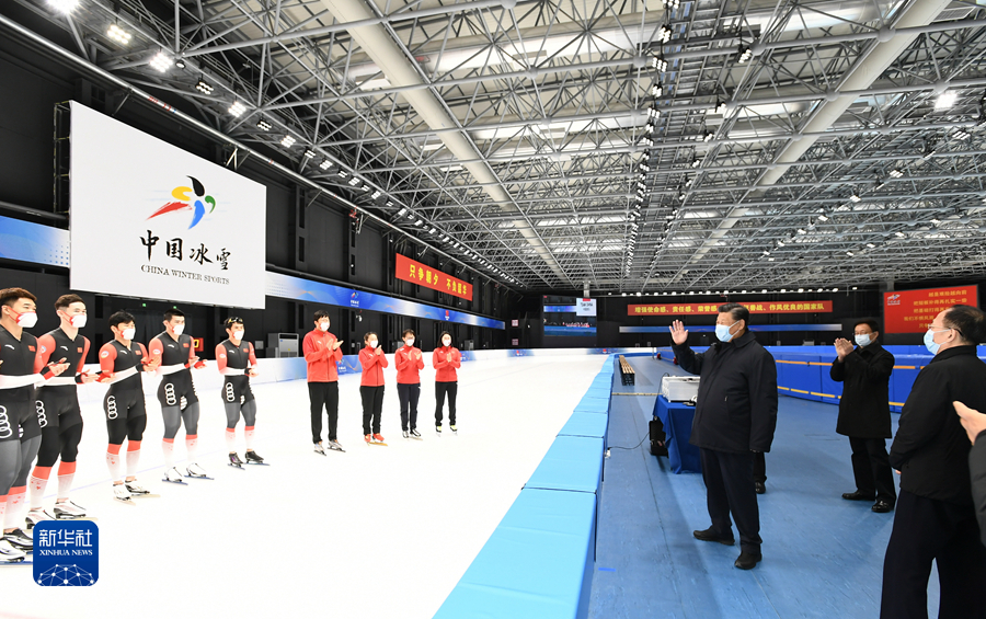 1月4日,中共中央總書記、國家主席、中央軍委主席習(xí)近平在北京考察2022年冬奧會、冬殘奧會籌辦備賽工作。這是4日下午,習(xí)近平在二七廠冰雪項(xiàng)目訓(xùn)練基地速滑館,向參訓(xùn)運(yùn)動員、教練員表示慰問。新華社記者 謝環(huán)馳 攝