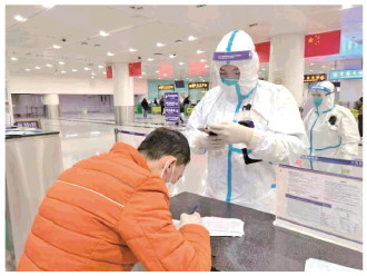 “手套、鞋套、面屏、連接處封死……”1月25日9點(diǎn)半,遼寧大連周水子出入境邊防檢查站執(zhí)勤四隊(duì)教導(dǎo)員常亮嘴里一邊嘟囔著,一邊穿上防護(hù)服。由于接下來的幾個(gè)小時(shí)需要穿防護(hù)服執(zhí)勤,他把早飯和午飯合在了一起吃,盡量少喝水,然后從專用通道走出隔離酒店,乘車前往執(zhí)勤現(xiàn)場,第四次參加閉環(huán)勤務(wù)。
