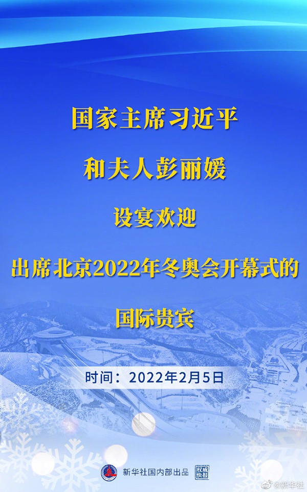 習(xí)近平和彭麗媛設(shè)宴歡迎出席北京2022年冬奧會開幕式的國際貴賓